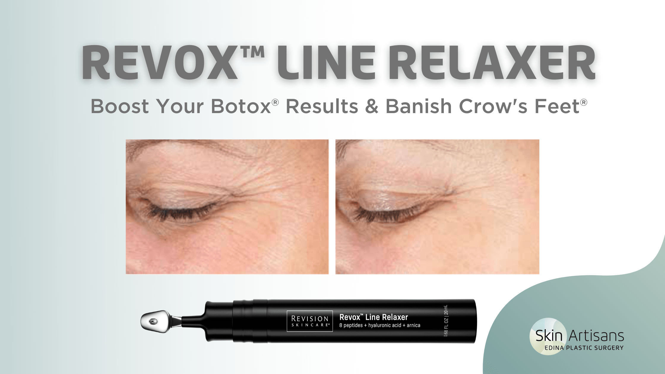 If you are bothered by crow’s feet or fine lines below your eyes, the combination of Revox™ Line Relaxer with Botox® Cosmetic or Dysport® may be a game-changer! Ask your Skin Artisans Advanced Practice Esthetician or Injection Specialist about this unique product at your next visit or shop for it online by clicking here.