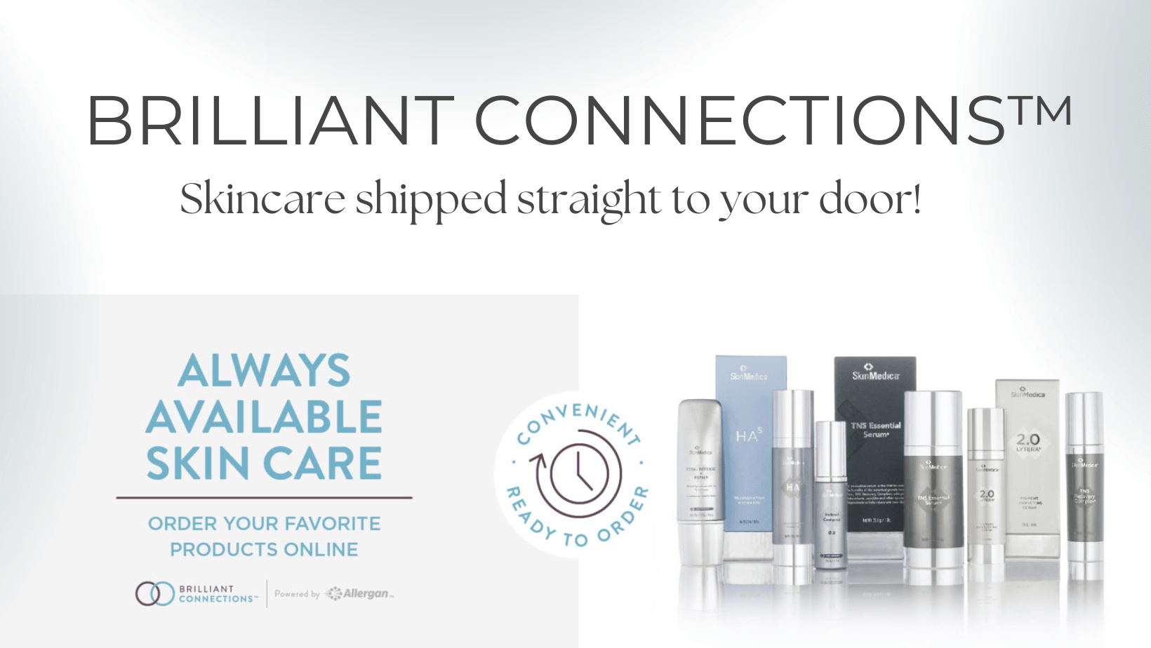 Using the right products at home is essential to reaching your skincare goals. At Skin Artisans, our Advanced Practice Estheticians have personally vetted some of the most powerful skincare products available today. SkinMedica® by Allergan Aesthetics™ is not only loved by our staff, but it is also a favorite amongst our patients! Why? SkinMedica® is a physician-grade line with multiple all-star products, like TNS® Advanced+ Serum, that are clinically proven to enhance the health and appearance of your skin. Brilliant Connections™, Skin Artisan’s online SkinMedica® store, allows you to purchase your favorite products directly through our website and have them shipped straight to your door! Read on to learn the many benefits of shopping through Brilliant Connections™, including saving 20% on SkinMedica® all year round!