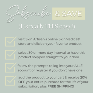 Some of our patients’ favorite SkinMedica® products sell out quickly at Skin Artisans. But these products are always in stock when you shop in our online store. Plus, you can sign up for auto-ship to ensure you never run out!
