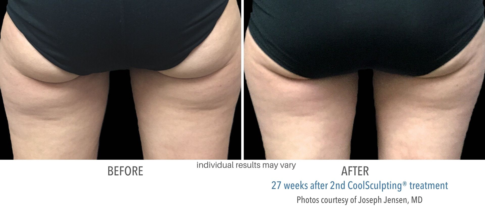 CoolSculpting® is a fast, safe, and effective treatment to reduce stubborn pockets of fat where the upper thighs meet the buttocks. It is most effective on individuals who are at or near their ideal body weight and currently practicing a healthy lifestyle. Although CoolSculpting® is NOT a weight loss treatment, it can help reshape your body and accentuate the curves and contours of your body.