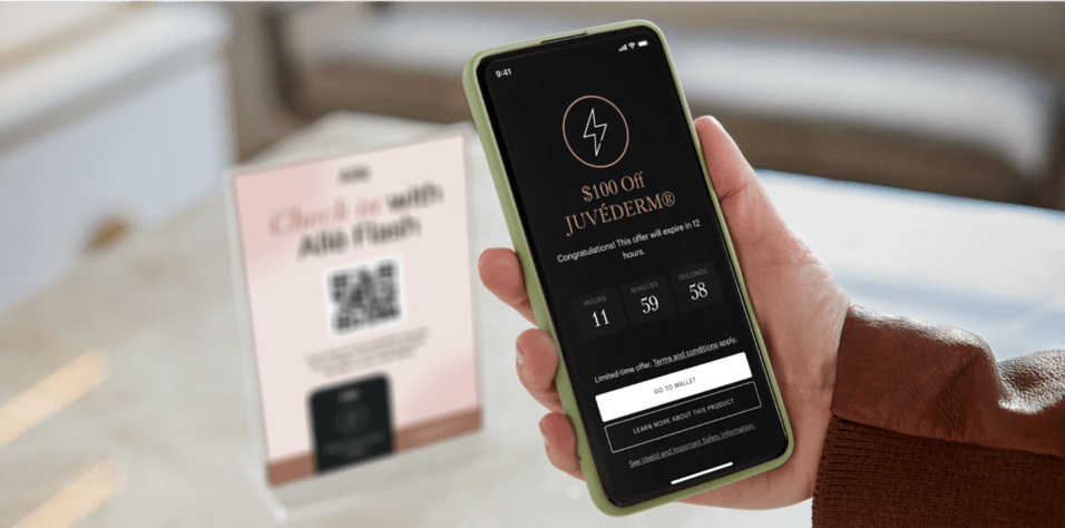 your appointment, ask for your provider’s Allē Flash QR code. Scan it with your smartphone to easily access your Allē Wallet, where savings and special offers await! You might win an exclusive, limited-time Flash offer on a product or treatment from the Allē family of brands, like $100 OFF JUVÉDERM!
