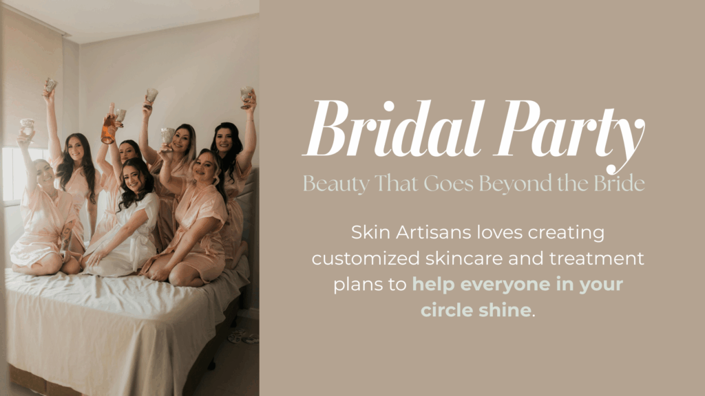 At Skin Artisans, we don’t just “treat” your skin, we partner with you. From your first consultation to your final pre-wedding day glow-up, we tailor every product, treatment, and timeline to your skin’s unique needs and your wedding-day vision. Think of us as your skin’s glam squad; your behind-the-scenes experts ensuring your complexion looks as beautiful and timeless when you walk down the aisle as your love story. And, just like with so many other things in life, the earlier you start, the better!