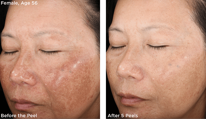 Our Melasma peel is the “Cosmelan Peel,” a very effective once-a-year peel. Excellent for Asian and dark skins or for those with stubborn hormonal pigment. A cream mask which is left on for 8 to 10 hours and a built in home care program with a maintenance cream and a hydrating and soothing cream. Excellent value!