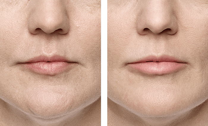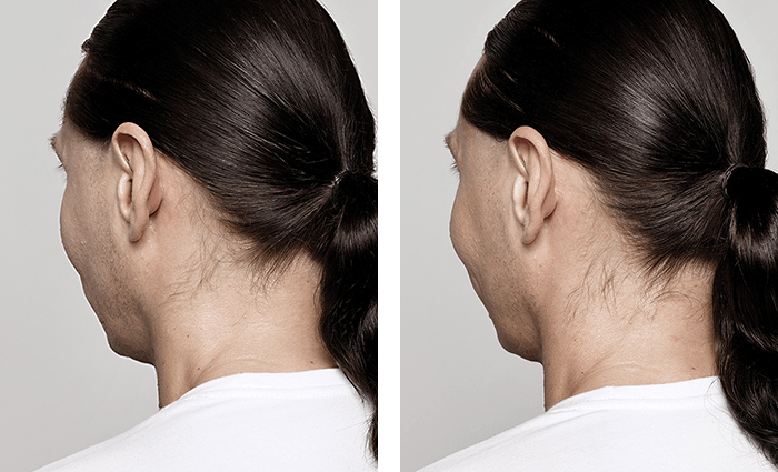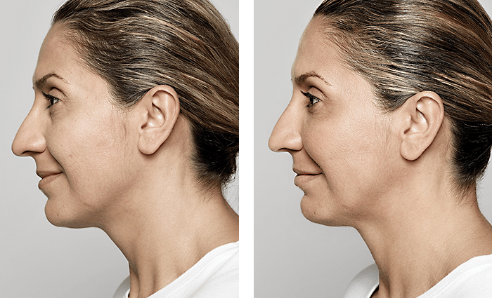 Photos taken before and one month after treatment. A total of 3.3 mL of JUVÉDERM® VOLUMA™ XC was injected into the chin area.