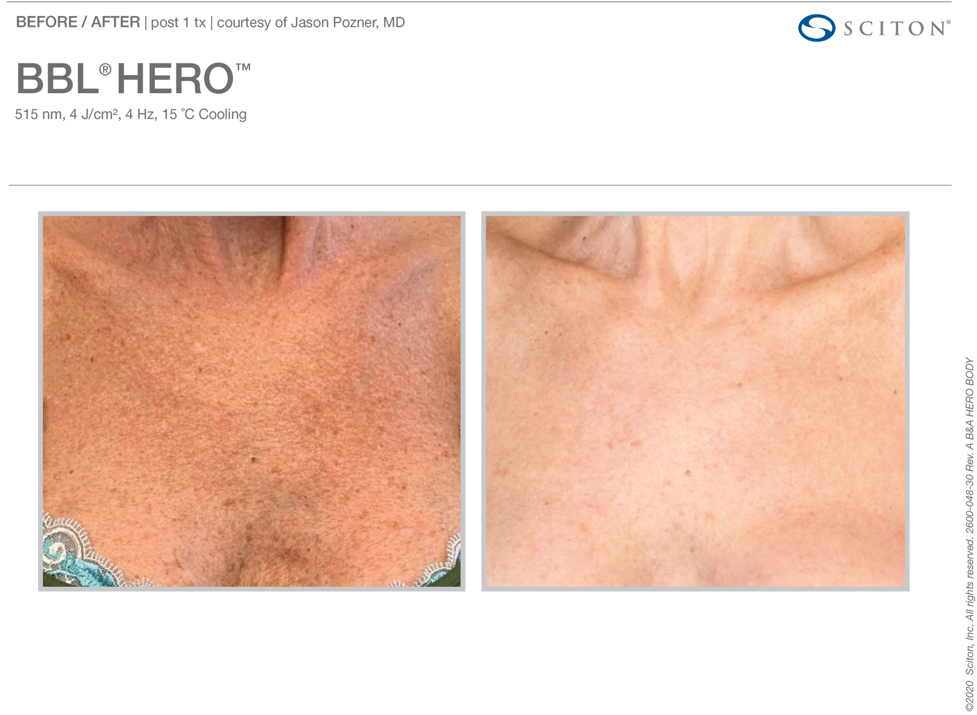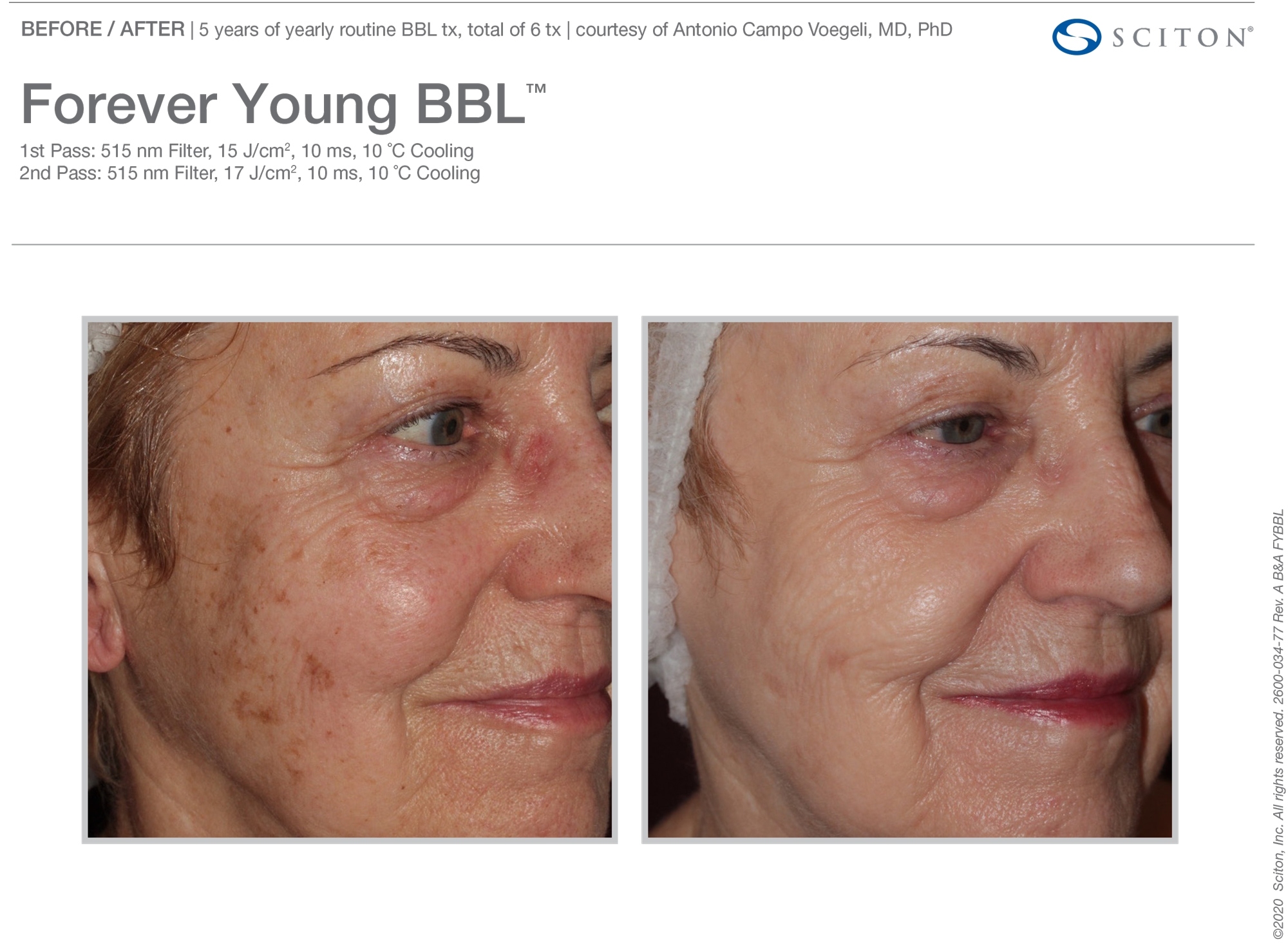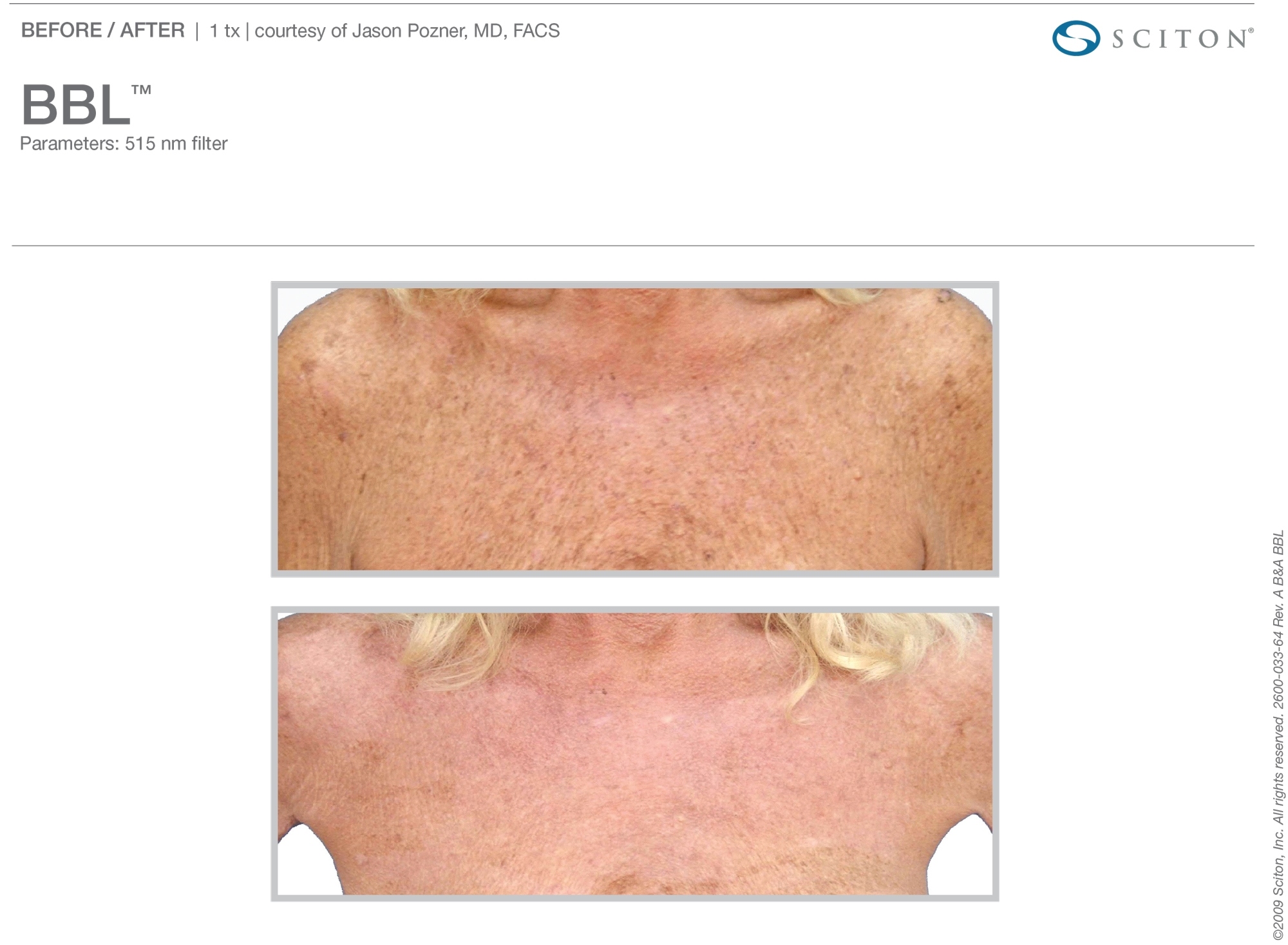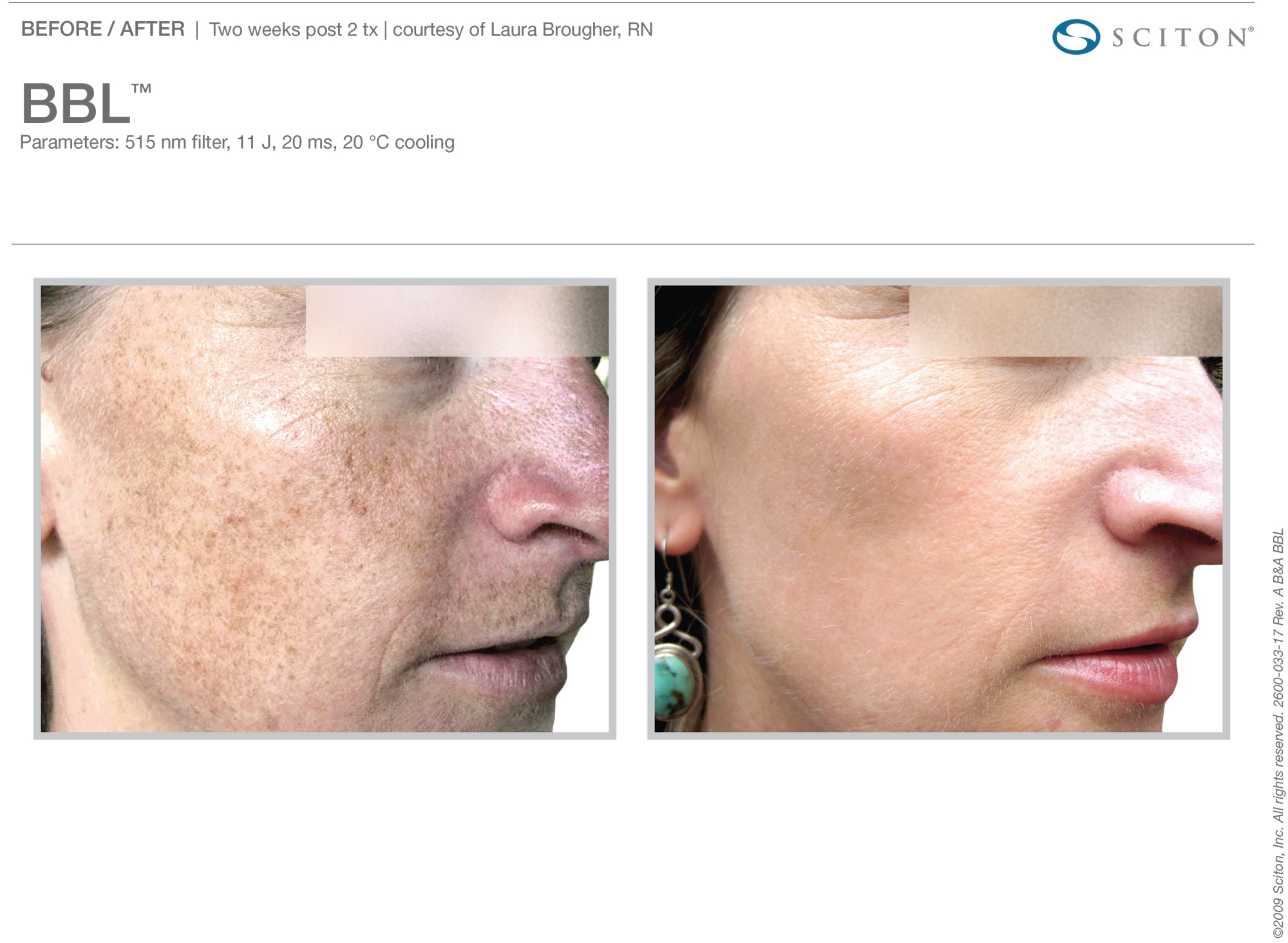 Patient presented with solar damage and wanted even skin tone. Patient was on a tight budget and purchased CE Ferulic Serum. The BBL did all the heavy lifting. Results are after one full face BBL Photorejuvenation treatment.