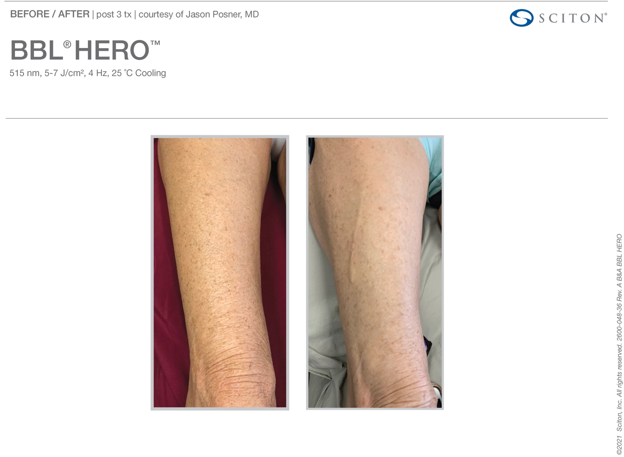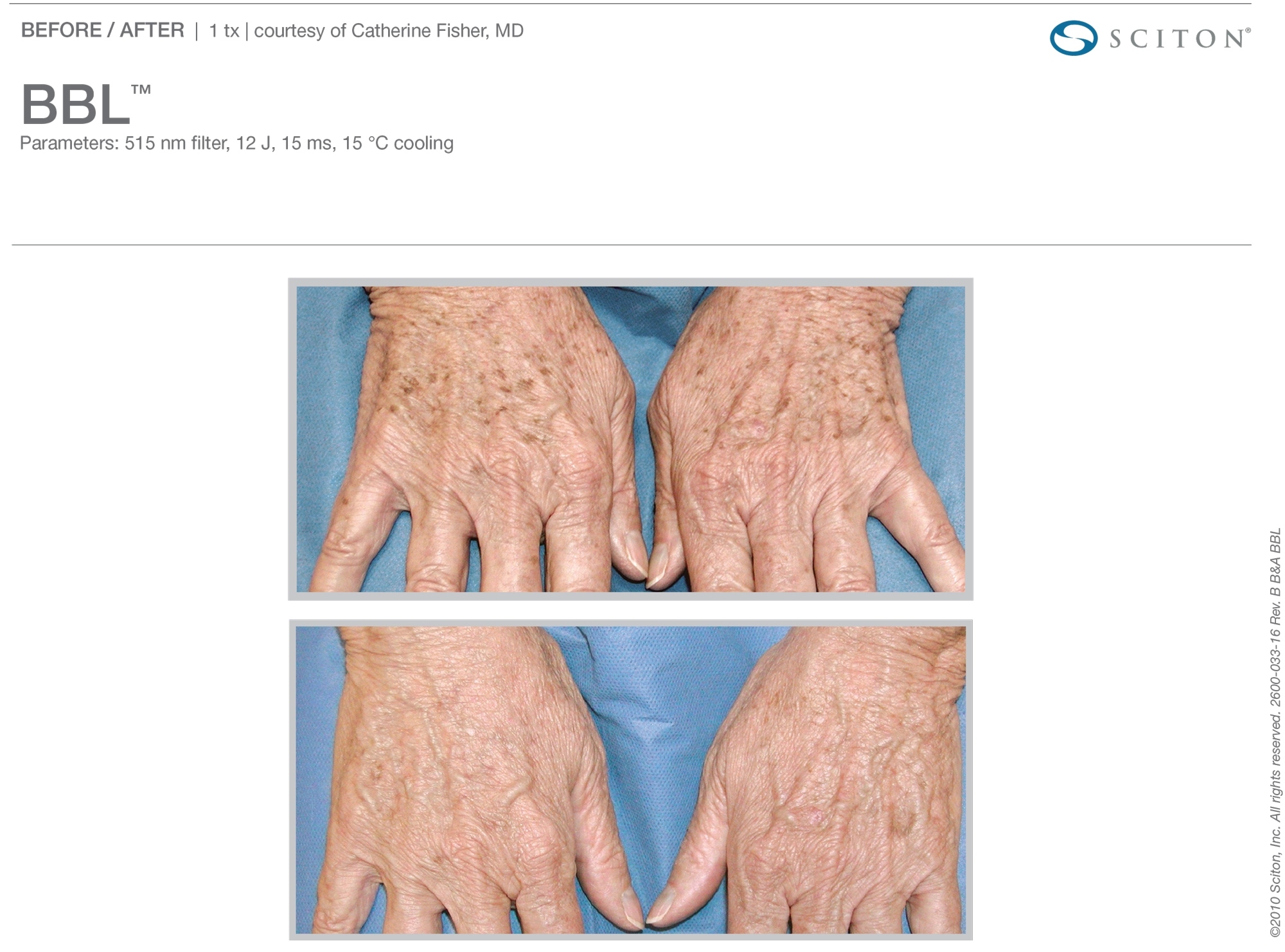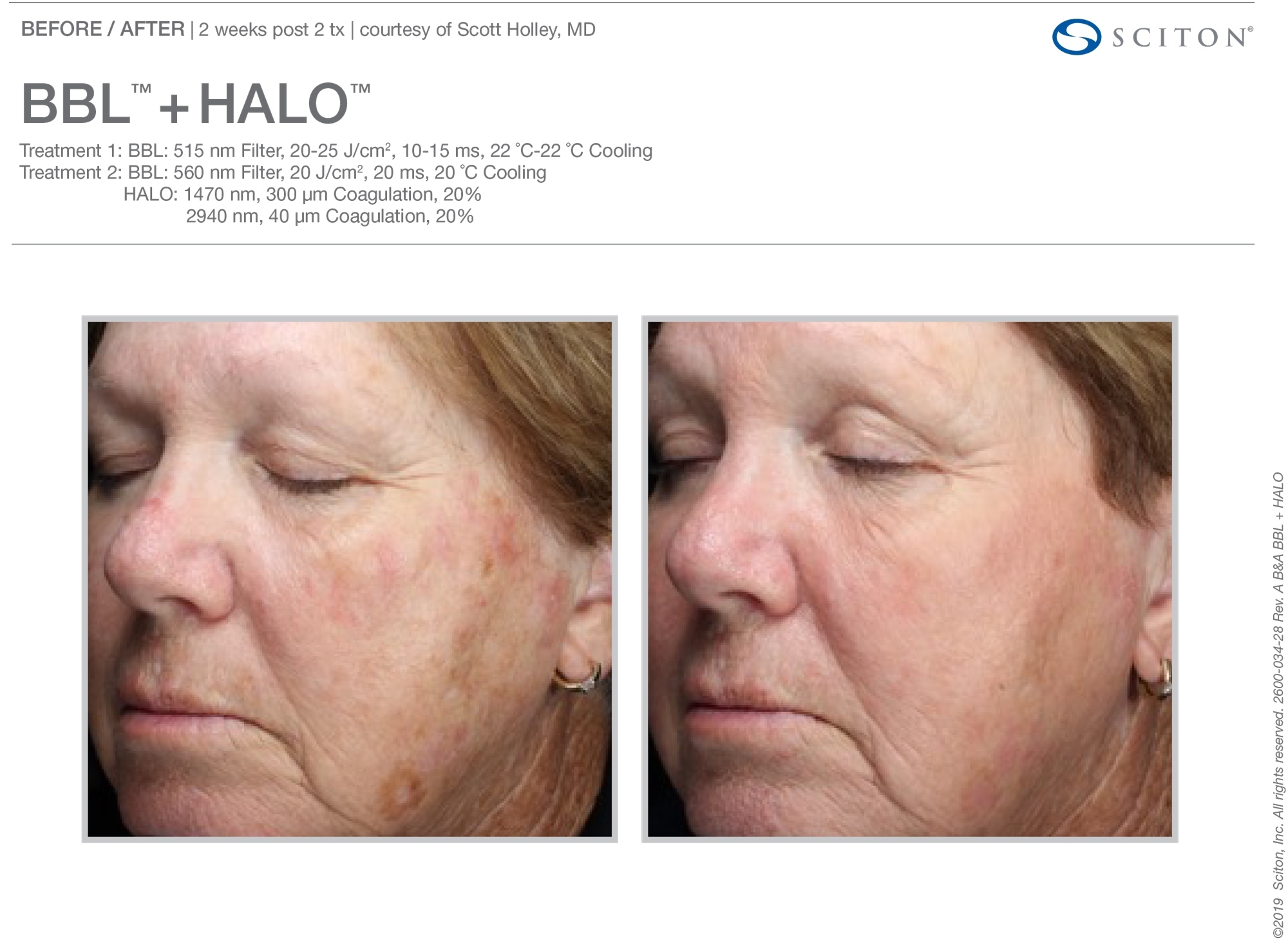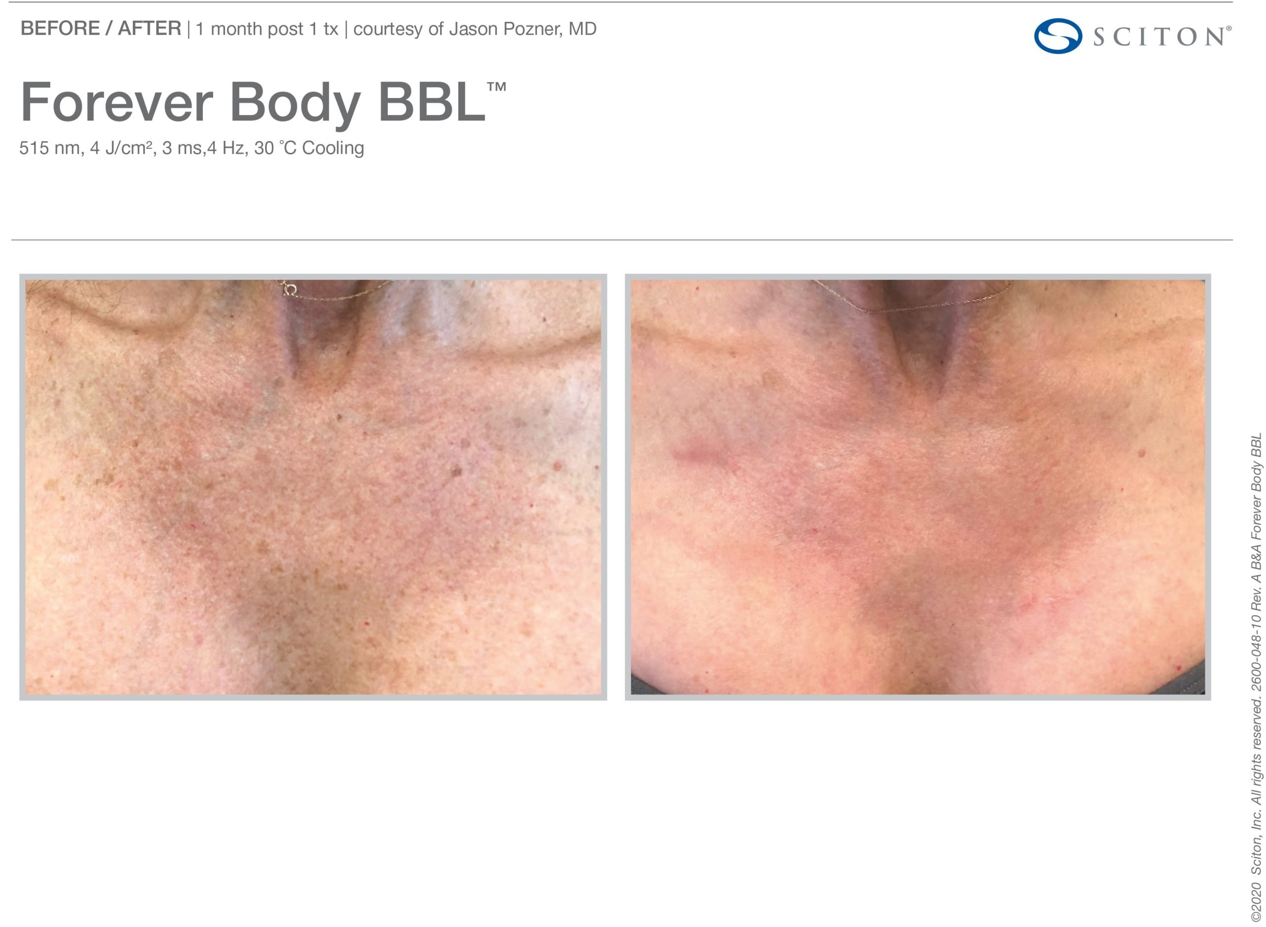 Patient presented with solar damage and wanted even skin tone. Patient was on a tight budget and purchased CE Ferulic Serum. The BBL did all the heavy lifting. Results are after one full face BBL Photorejuvenation treatment.