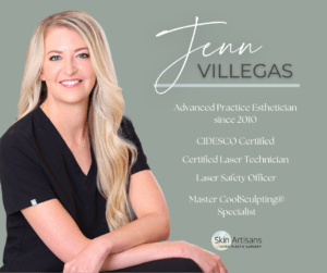 Skin Artisans is proud to have one of the most experienced and talented teams of Advanced Practice Estheticians in the entire Midwest! These ladies have more than 50 YEARS of combined experience in clinical skincare. They are passionate about their industry and helping patients achieve their healthiest, most beautiful skin possible. We are so excited to add to this family of incredible providers. Read on to learn more about Jennifer “Jenn” Villegas, the newest addition to the Skin Artisans Esthetics Team!