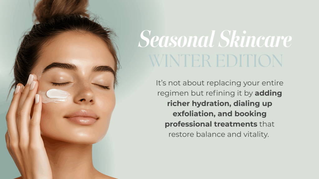 That’s why seasonal skincare adjustments are so important. They’re not about replacing your entire regimen but refining it by adding richer hydration, dialing up exfoliation, and booking professional treatments that restore balance and vitality. Think of it as recalibrating your skincare strategy to meet your skin where it’s at, not where it was in July.