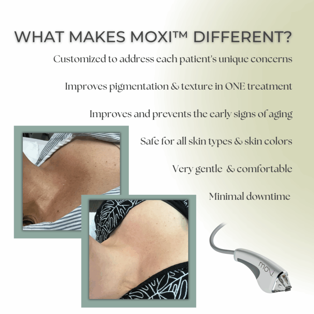 - Choose MOXI™ if you’re younger, want to prevent future aging, prefer little-to-no downtime, or are looking for a gentle but effective way to keep your skin glowing year-round.