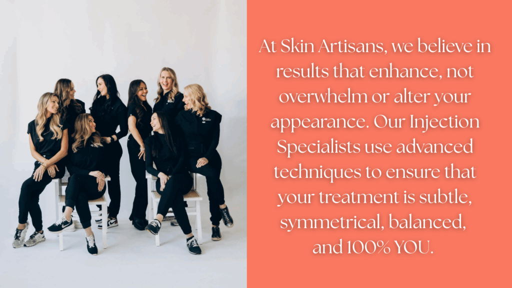 At Skin Artisans, we believe in results that enhance, not overwhelm or alter your appearance. Our Injection Specialists use advanced techniques to deliver results that are natural, symmetrical, and uniquely you. You’ll still look like yourself, just more refreshed, radiant, and confident. In fact, many of our patients say friends and family notice they look more vibrant and youthful – without realizing they’ve had anything done!