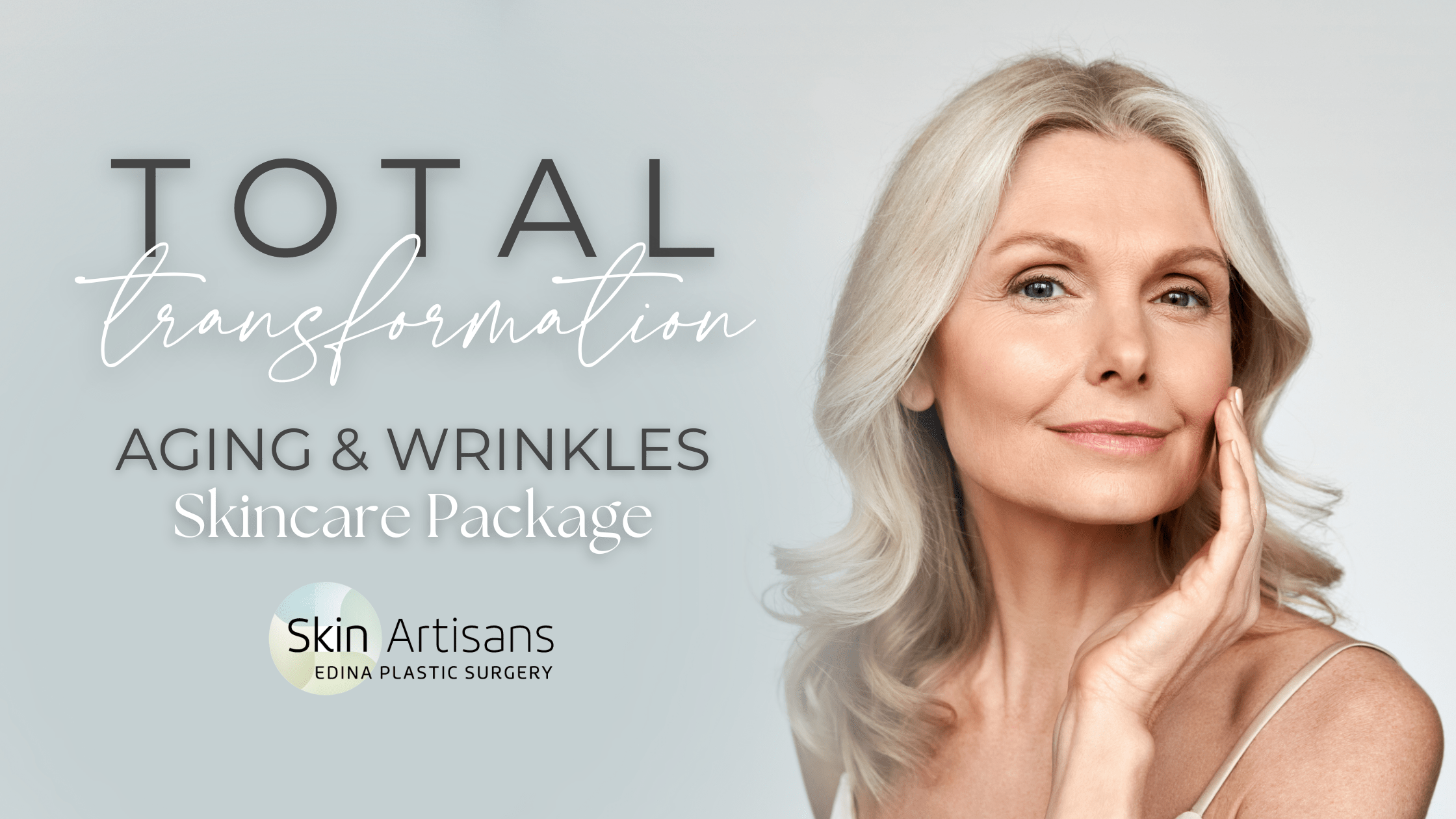 It’s frustrating when our skin doesn’t look as vibrant and youthful as we feel on the inside. Fine lines, wrinkles, lack of firmness, and uneven pigmentation are common concerns for almost everyone over 30. Although we can’t stop the clock on aging, we CAN, to an extent, reverse the direction of the hands and slow down the ticking! Combining the right professional treatments and physician-grade skincare can significantly improve your skin’s smoothness, clarity, texture, firmness, and tone over time. Skin Artisan’s new Total Transformation Aging & Wrinkles Skincare Package couples our most effective treatments and products to completely rejuvenate the health and appearance of your skin. Here’s what’s included!