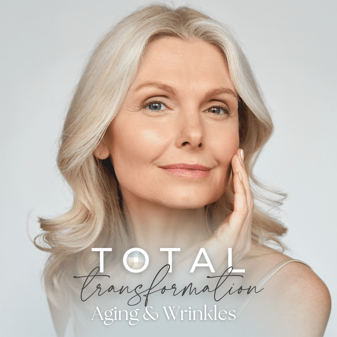 You go to the dentist twice a year for professional cleaning, but that doesn’t mean you don’t brush your teeth daily to maintain good oral health, right? Skincare is much the same – you must back up the results from professional, in-office treatments with quality skincare at home. Our new Total Transformation Aging & Wrinkles Skincare Package includes a bundle of physician-grade homecare products that have been hand-selected by our estheticians to provide the most effective results for aging skin.