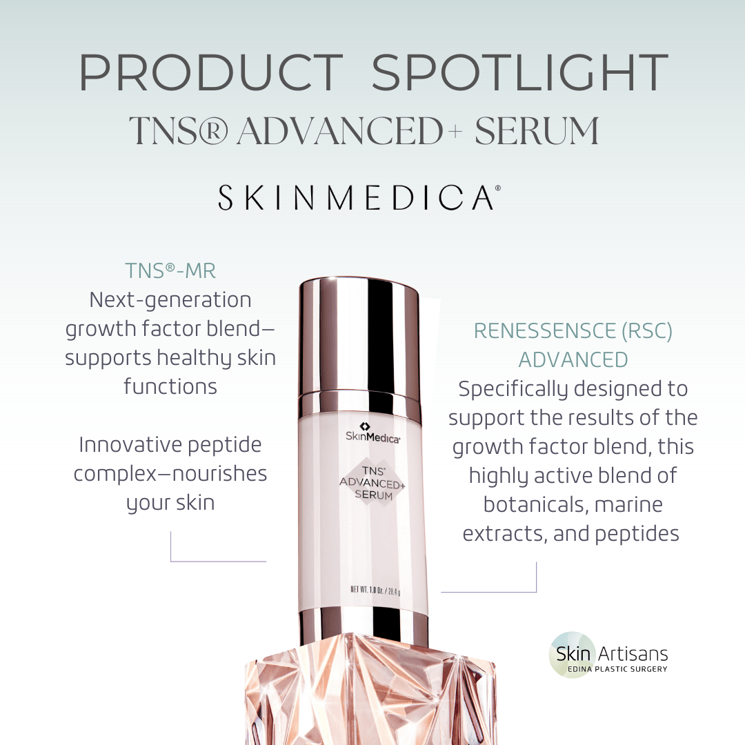 TNS® Advanced+ Serum by SkinMedica® – The skin rejuvenating ROCKSTAR of the SkinMedica® skincare line! This next-generation skin rejuvenating formula improves the appearance of coarse wrinkles, fine lines, skin tone, and texture. TNS® Advanced+ Serum is the only growth factor product proven to address sagging skin. Visible results are seen in just two weeks. Results continue to improve through 24 weeks of use.