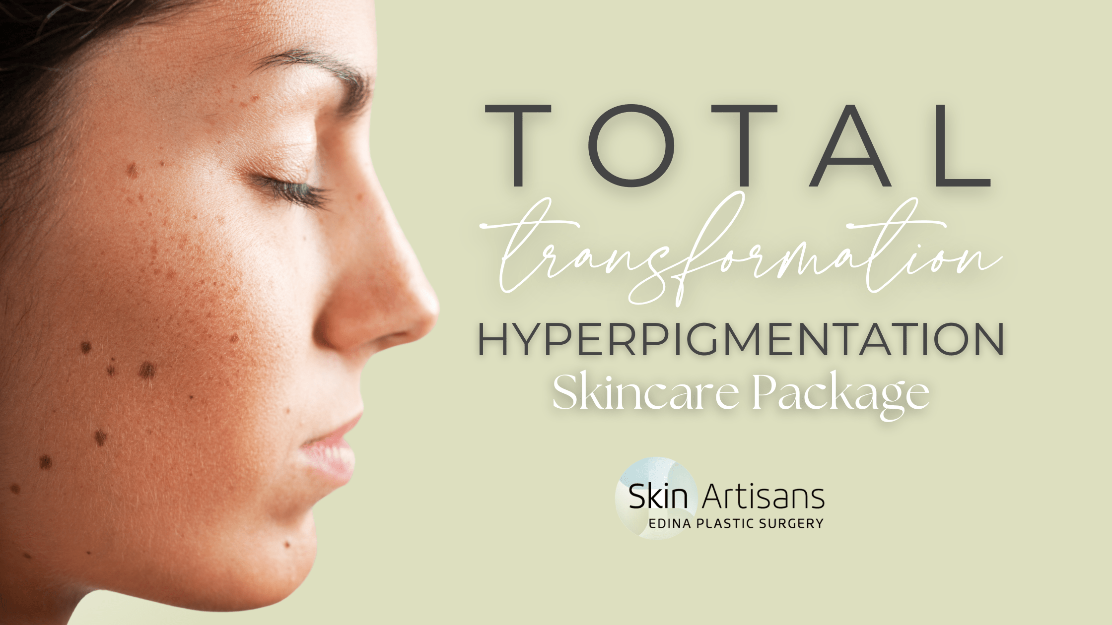 Are brown spots and sun damage making your complexion appear dull and uneven? Do you wish your skin tone was clearer and brighter? Hyperpigmentation can affect all skin types and colors and is one of the most common concerns our patients share with us at Skin Artisans. That’s why we’re so excited to introduce you to our new Total Transformation Hyperpigmentation Skincare Package! It combines some of the best professional treatments and physician-grade skincare products to dramatically improve your skin’s tone and clarity. Plus, it does it in record time! Here’s what’s included in this skin tone-transforming package!