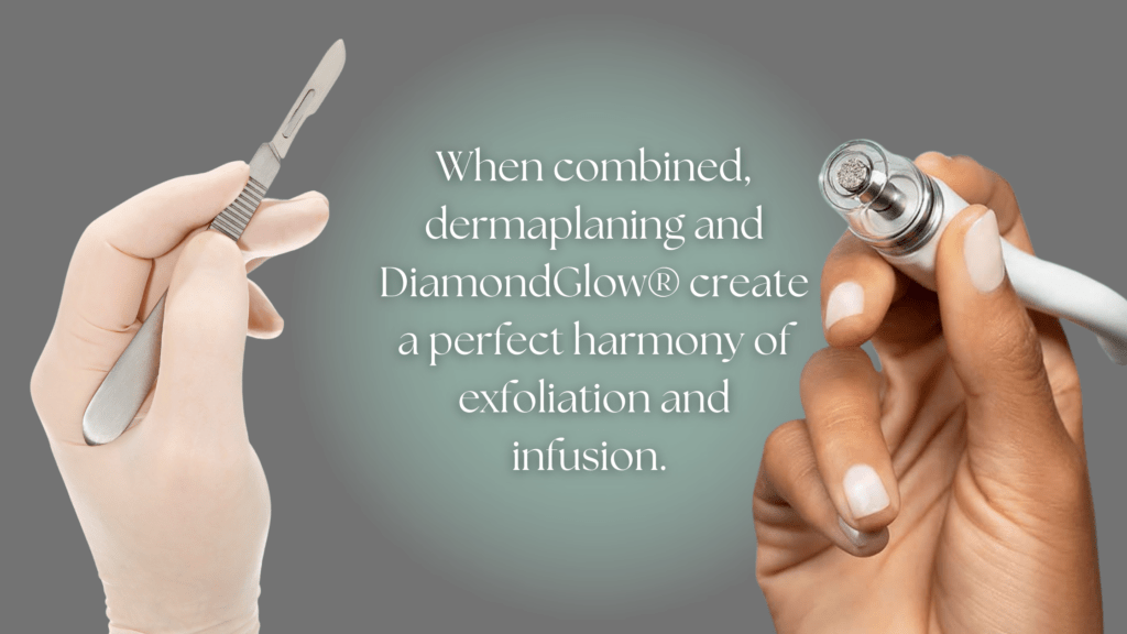 Dermaplaning and DiamondGlow work synergistically to exfoliate and nourish the skin.