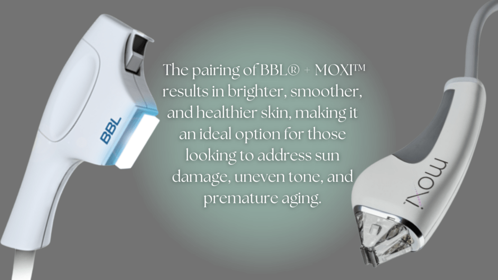 BBL® (BroadBand Light) and MOXI™ laser treatments are a powerful duo designed to target pigmentation, sun damage, and signs of aging while enhancing overall skin clarity and tone.