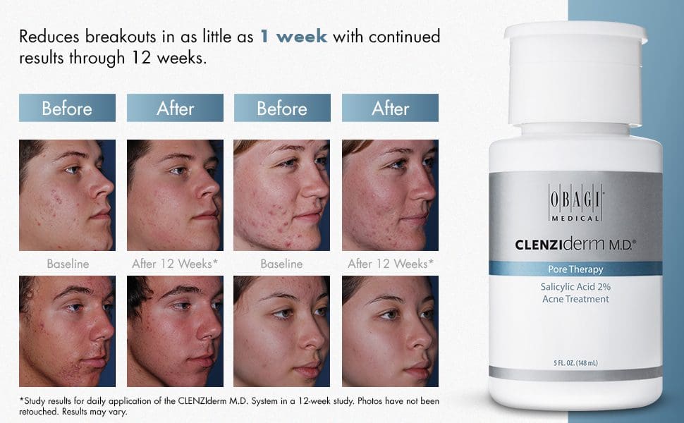 - CLENZIderm MD® by Obagi – A powerful, prescription-strength system with benzoyl peroxide and salicylic acid that penetrates deep into pores to clear stubborn acne and prevent future breakouts.