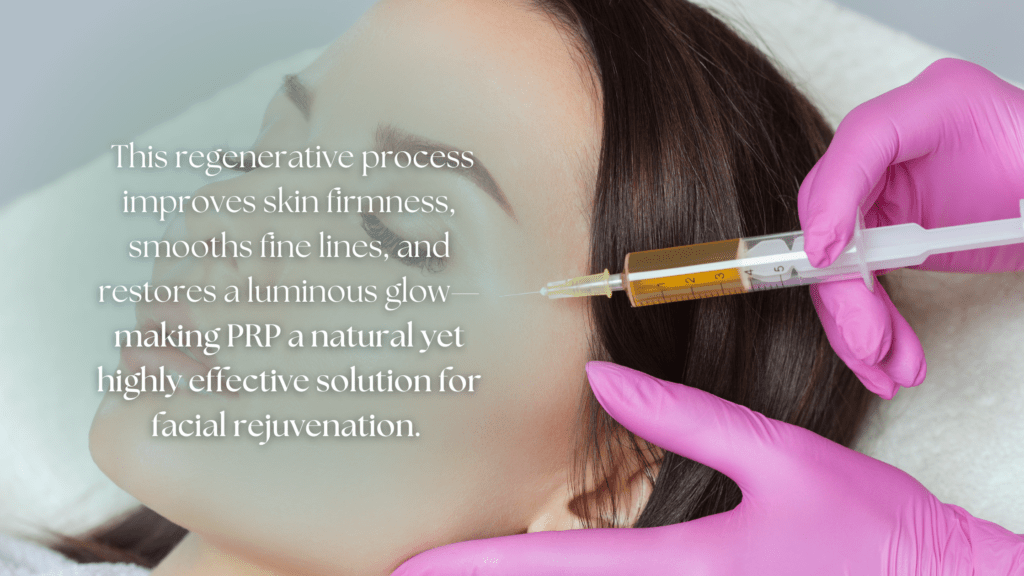 PRP contains a high concentration of platelets, growth factors, and cytokines—biologically active molecules that play a crucial role in cellular regeneration and wound healing. When injected into specific areas of the skin, these growth factors activate fibroblasts and promote angiogenesis (the formation of new blood vessels), ultimately improving skin texture, elasticity, and overall rejuvenation. This natural approach to skin enhancement encourages long-term tissue renewal while minimizing the risks associated with synthetic treatments.
