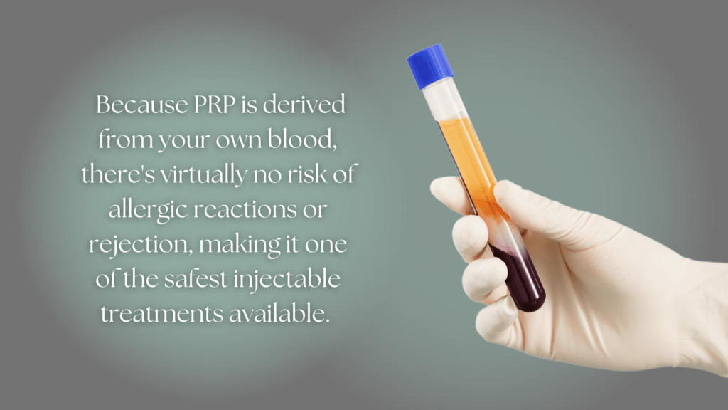 Because PRP is derived from your own blood, there’s virtually no risk of allergic reactions or rejection, making it one of the safest injectable treatments available. At Skin Artisans, our highly skilled injection specialists follow stringent safety protocols to ensure optimal results with minimal downtime. Patients typically experience mild redness or swelling at the injection sites, which subsides within a day.