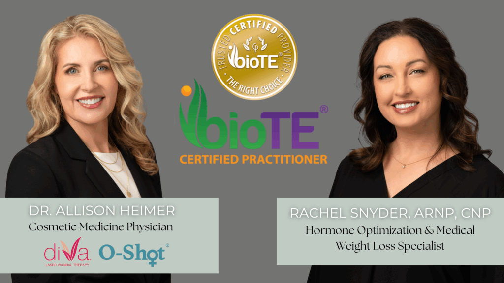 We see you. We hear you. And we know that these challenges impact far more than just your physical health; they affect your relationships, your confidence, and your overall quality of life. That’s why we’ve embraced innovative, science-backed vaginal rejuvenation treatments that target the root causes of intimate health concerns and restore vitality at every level. Our approach is comprehensive, addressing hormone balance, tissue health, and sexual function. Let’s take a look at how the combination of diVa® Vaginal Laser Therapy, BioTE® Bioidentical Hormone Replacement Therapy, and the O-Shot® can work together to help you feel more comfortable, confident, and connected with your intimate health and wellness.