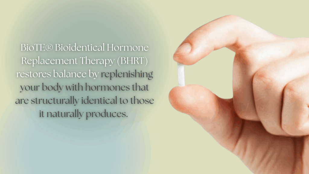 BioTE® Bioidentical Hormone Replacement Therapy (BHRT) restores balance by replenishing your body with hormones that are structurally identical to those it naturally produces. Unlike synthetic hormones, bioidentical hormones integrate seamlessly with your body’s receptors, allowing for optimal function and fewer side effects.