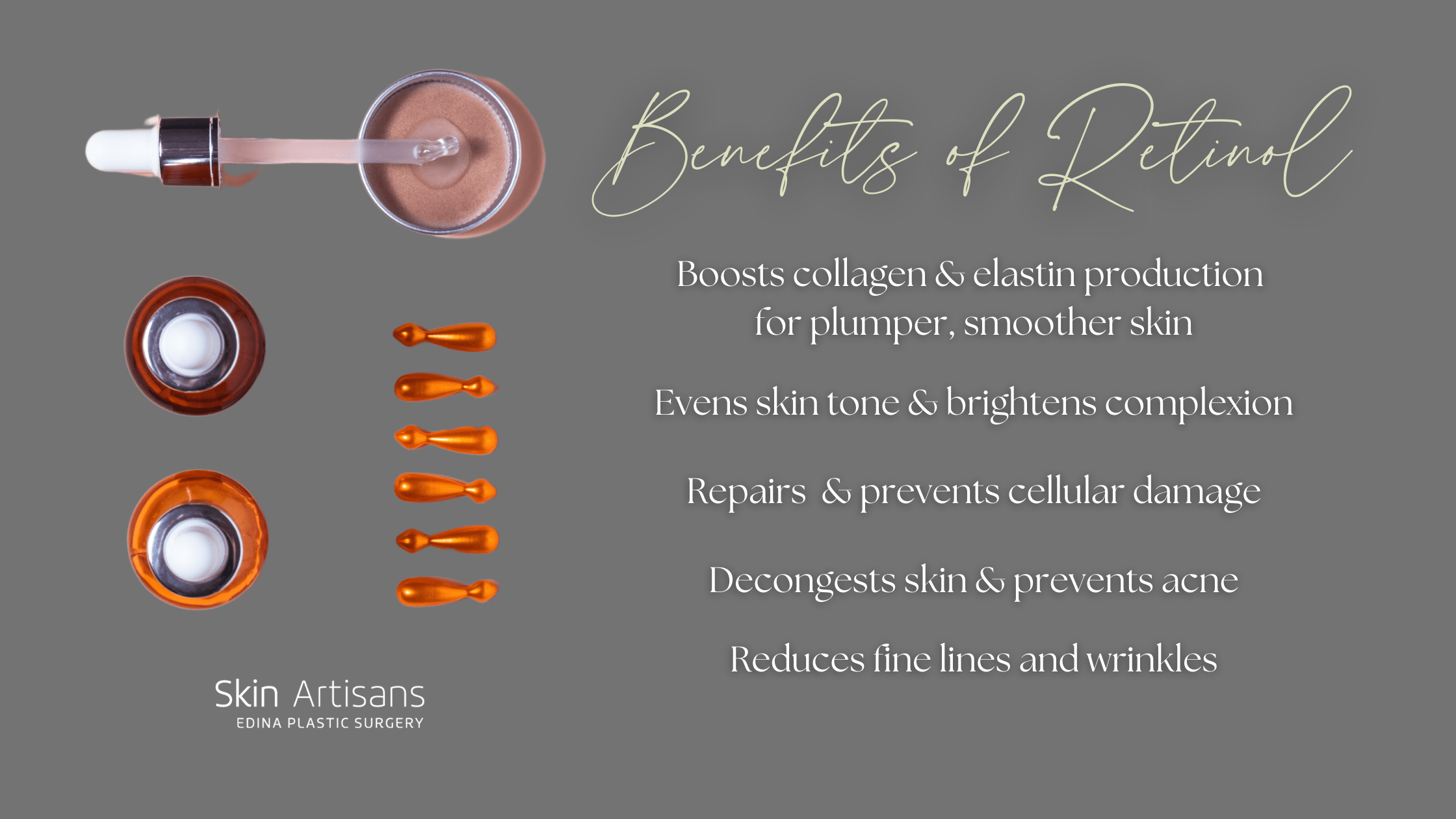 Are you ready to reap the rewards of adding retinol to your Winter skincare regimen? Schedule a complimentary consultation with a Skin Artisans Advanced Practice Esthetician to determine what product will suit your skin perfectly by calling (952) 234-8414, texting (952) 767-3163, or CLICKING HERE.